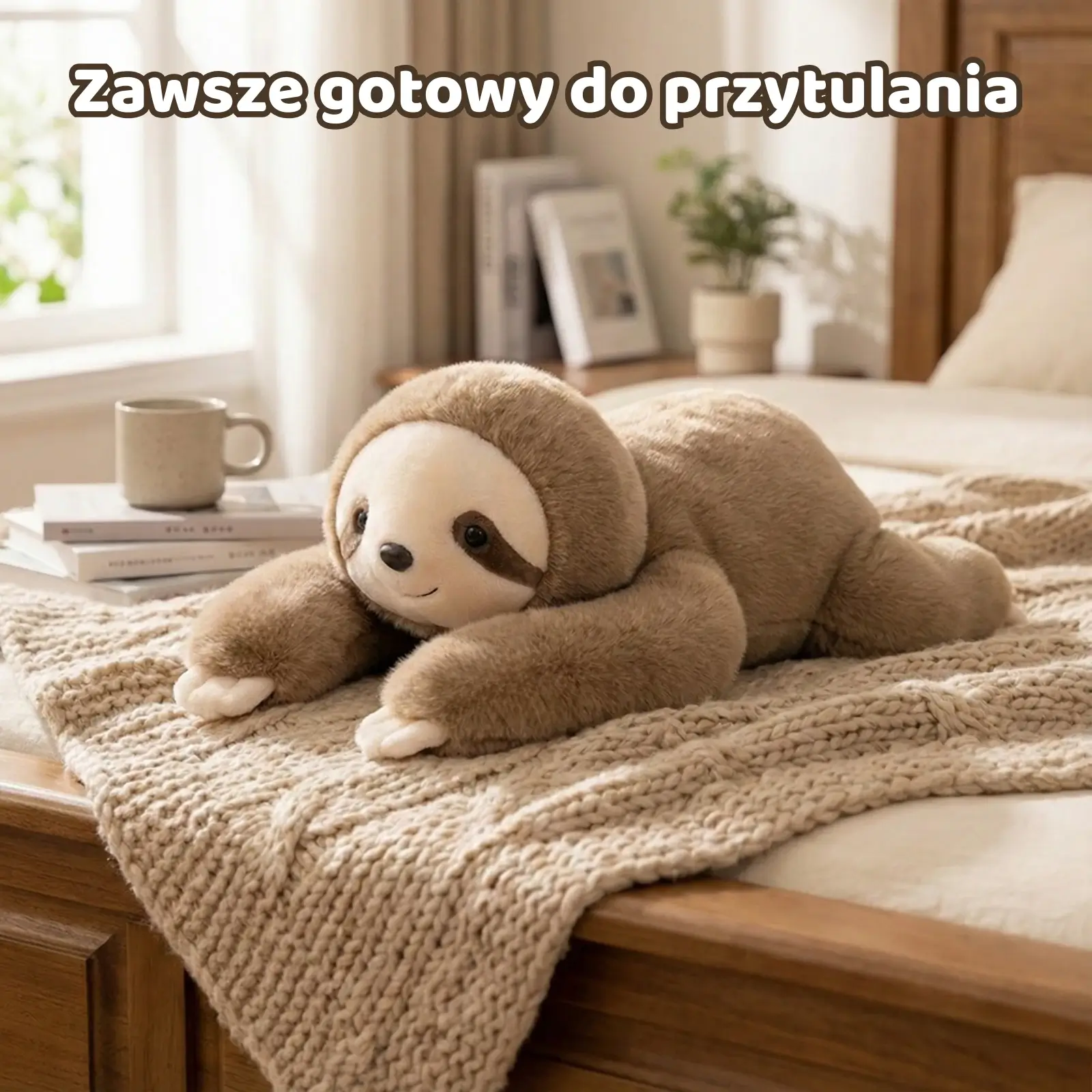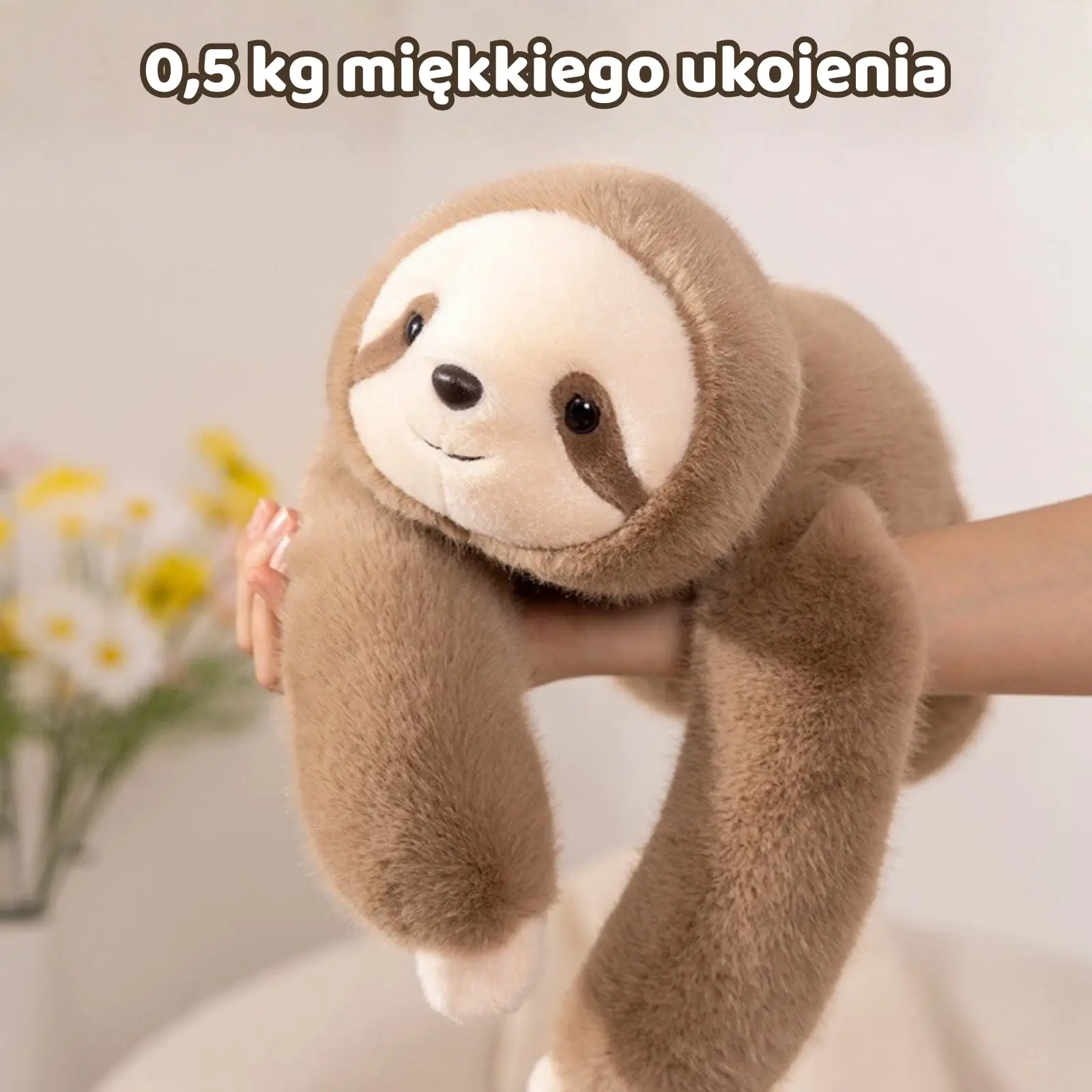 Przesuń suwak i zobacz Pandę oraz Leniwca. Oba mają kojący ciężar i obciążone łapki, które „trzymają” jak uścisk.